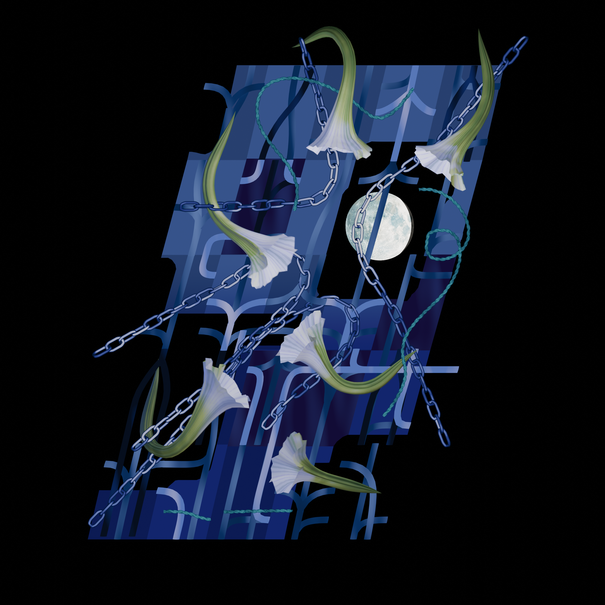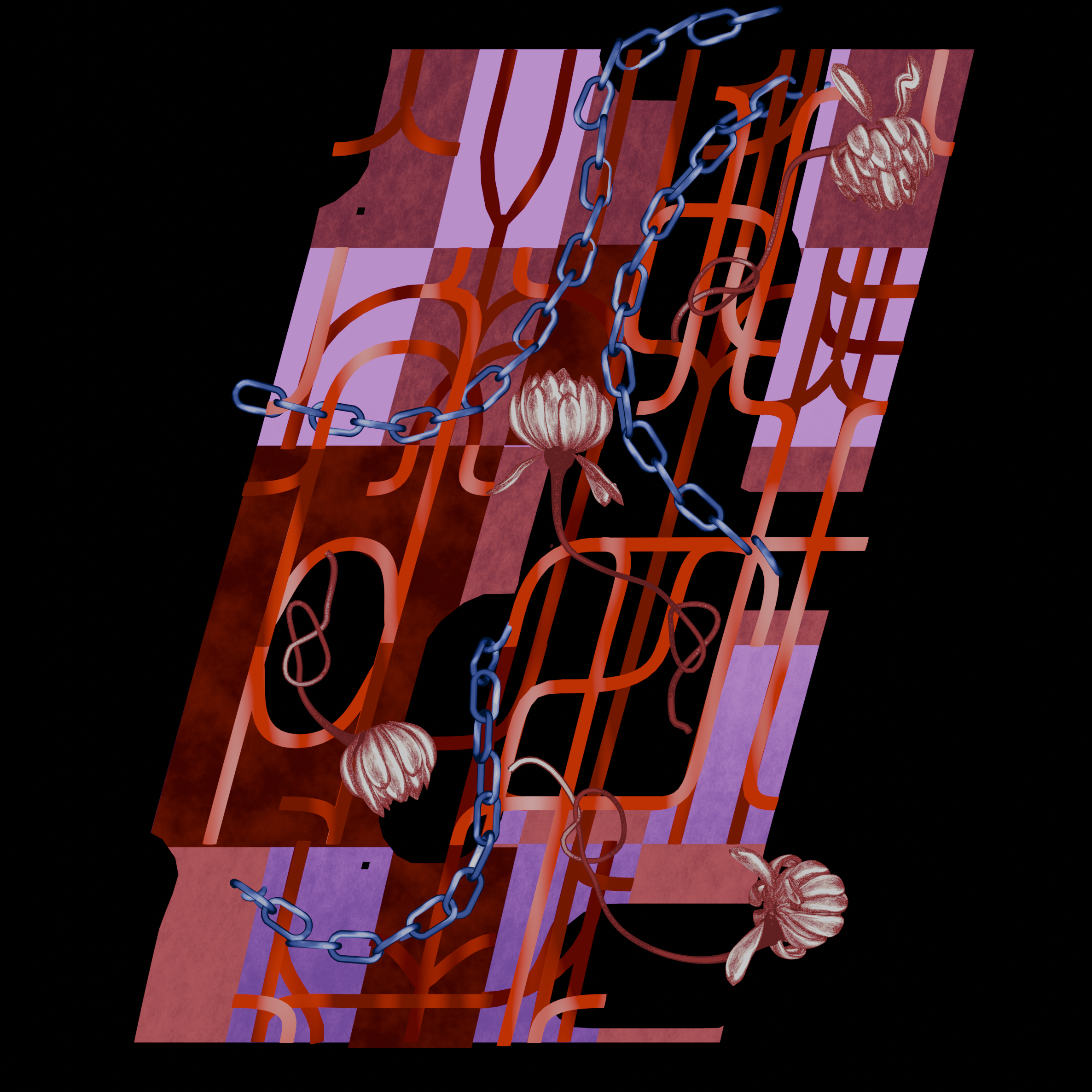 Morgan Thomas Shankweiler’s work engages with symbiosis and interconnection as potential systems through which to make art; in the studio, in haptic interaction and in collaboration with Curator Zoe McCarthy. Shankweiler’s labyrinthian painted tapestries serve as visual testaments to the transformative power of unexpected connections generated throughout the creative process.