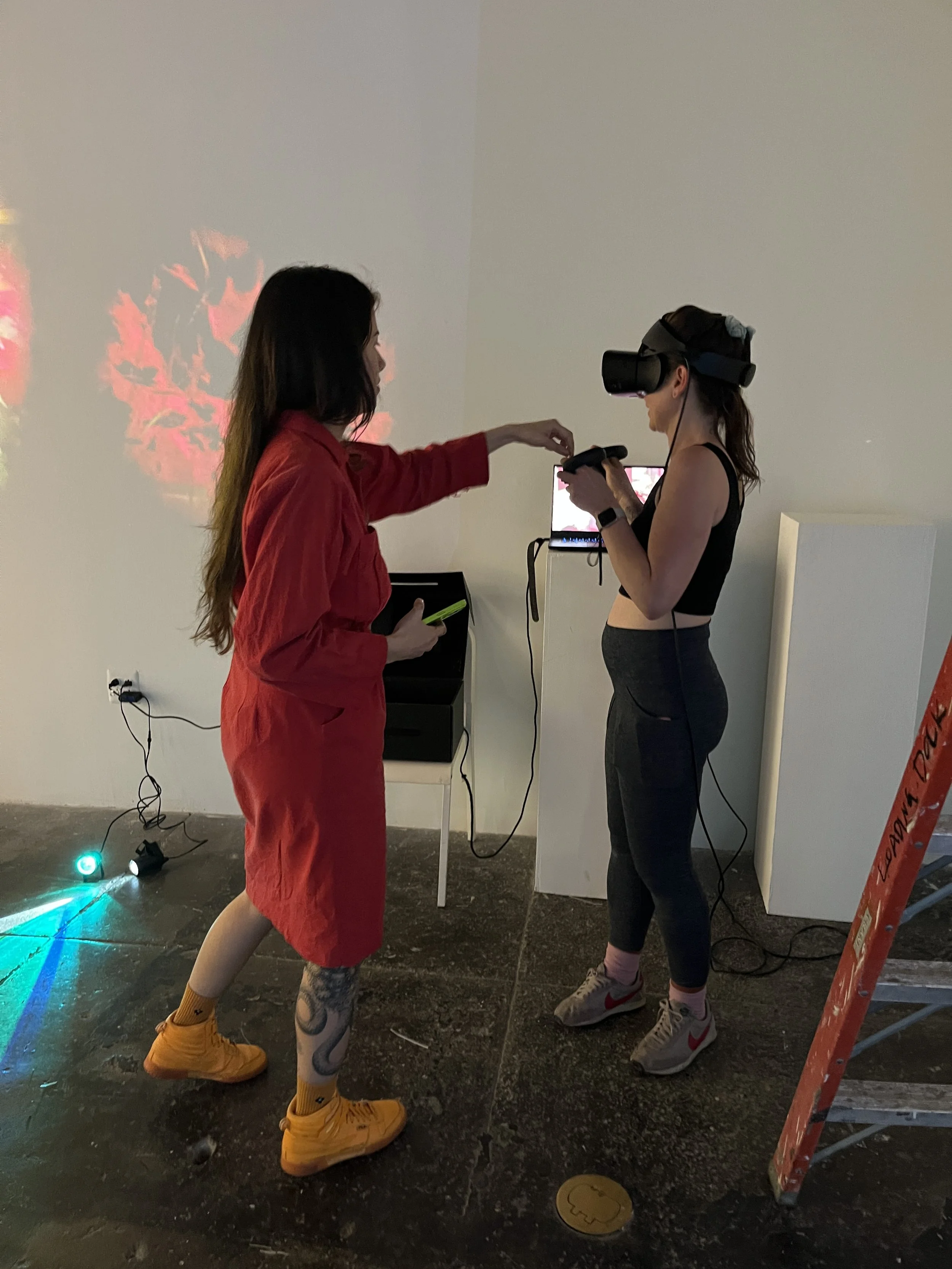 My membership at AUTOMAT began in Summer of 2023. Since then I’ve curated four shows, three of which included interactive media, including projections, tactile objects, motion sensors, and Virtual Reality.