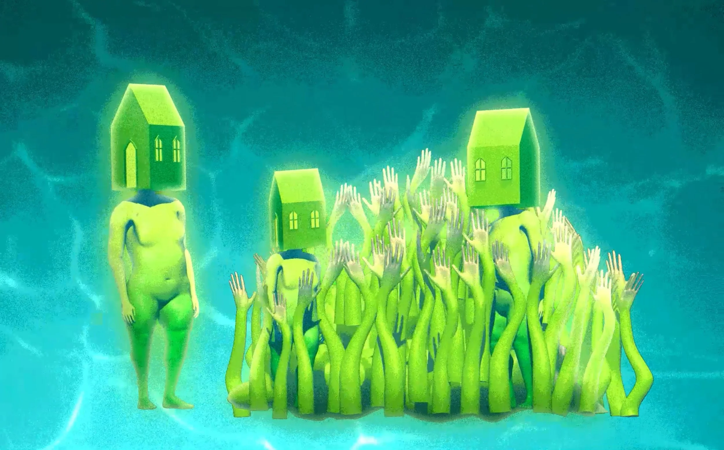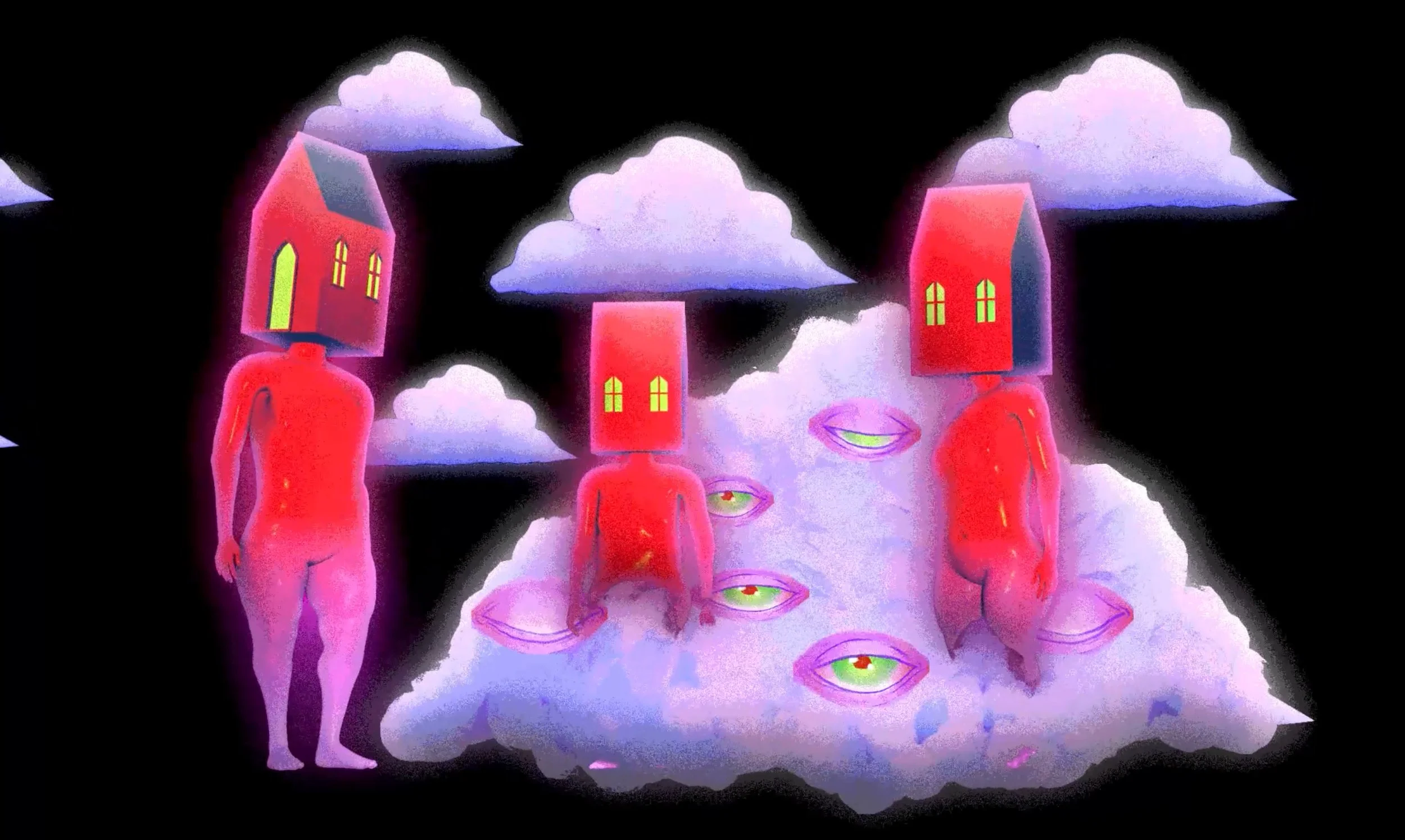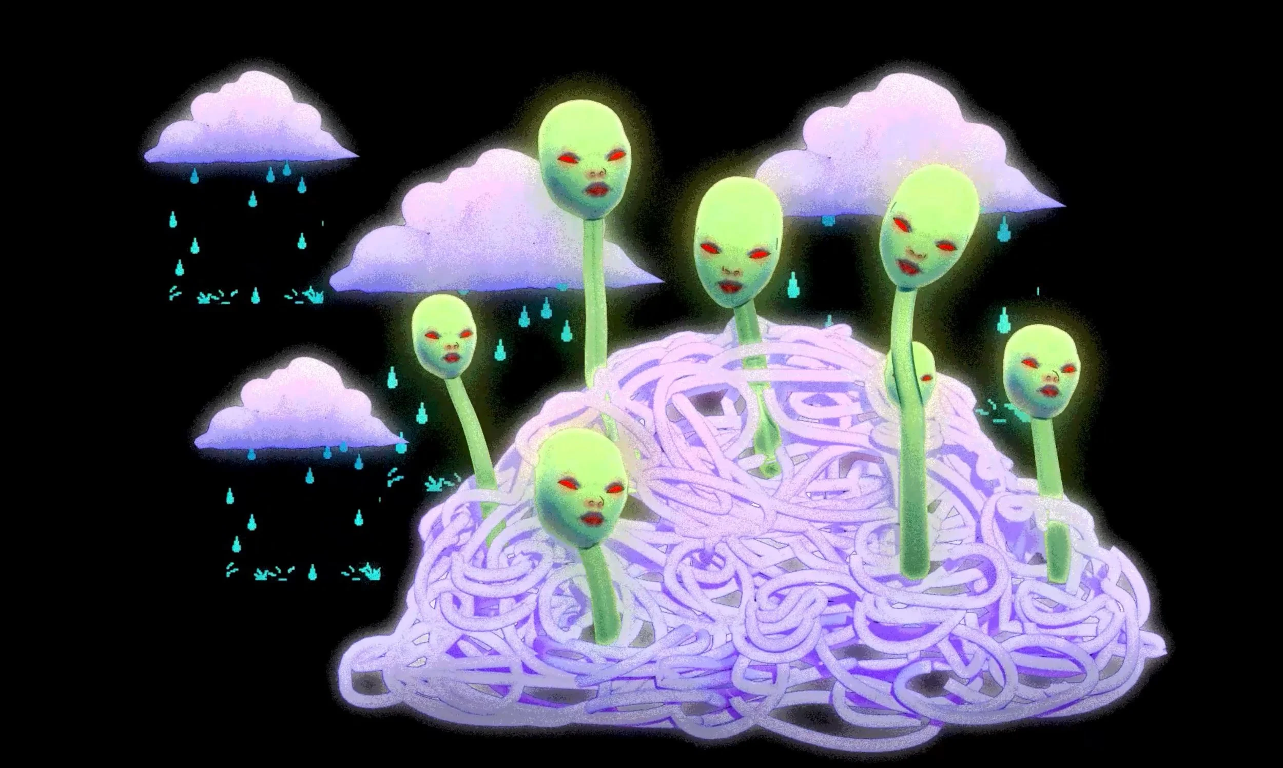 Because of the off center heap of flour sacks featured in the mural, I chose to create compositions that filled this space with imagery - a cloud, a brain, a pile of spaghetti. Rather than fixating on messaging or concept, I used this as an opportunity to be playful, and focus on interesting transitions.