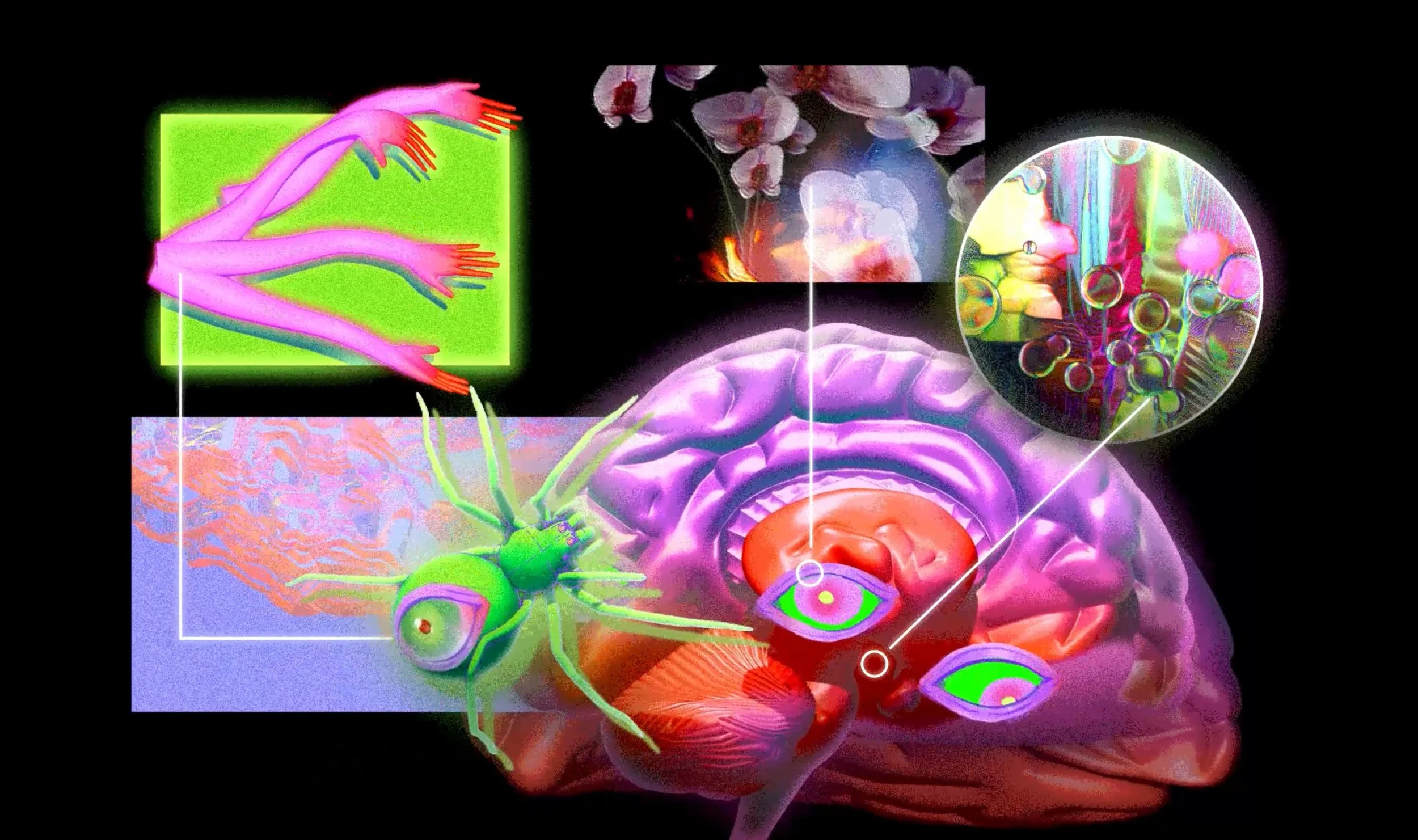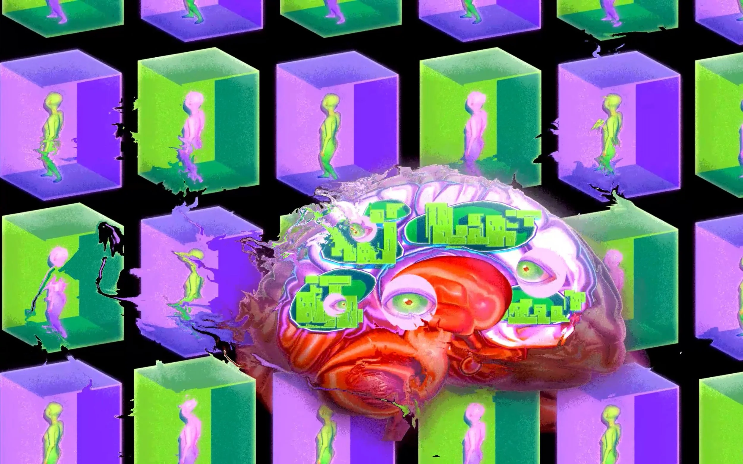 I chose to project onto a 30’ x 50’ brick wall featuring a mural in the Philadelphia Brewing Co. Parking lot. This space was a thru-way for attendees at the event, receiving a high amount of foot traffic, and presented an interesting opportunity in projection mapping on the mural. Thus, the features of the surface and the space informed the content I chose to animate and project.