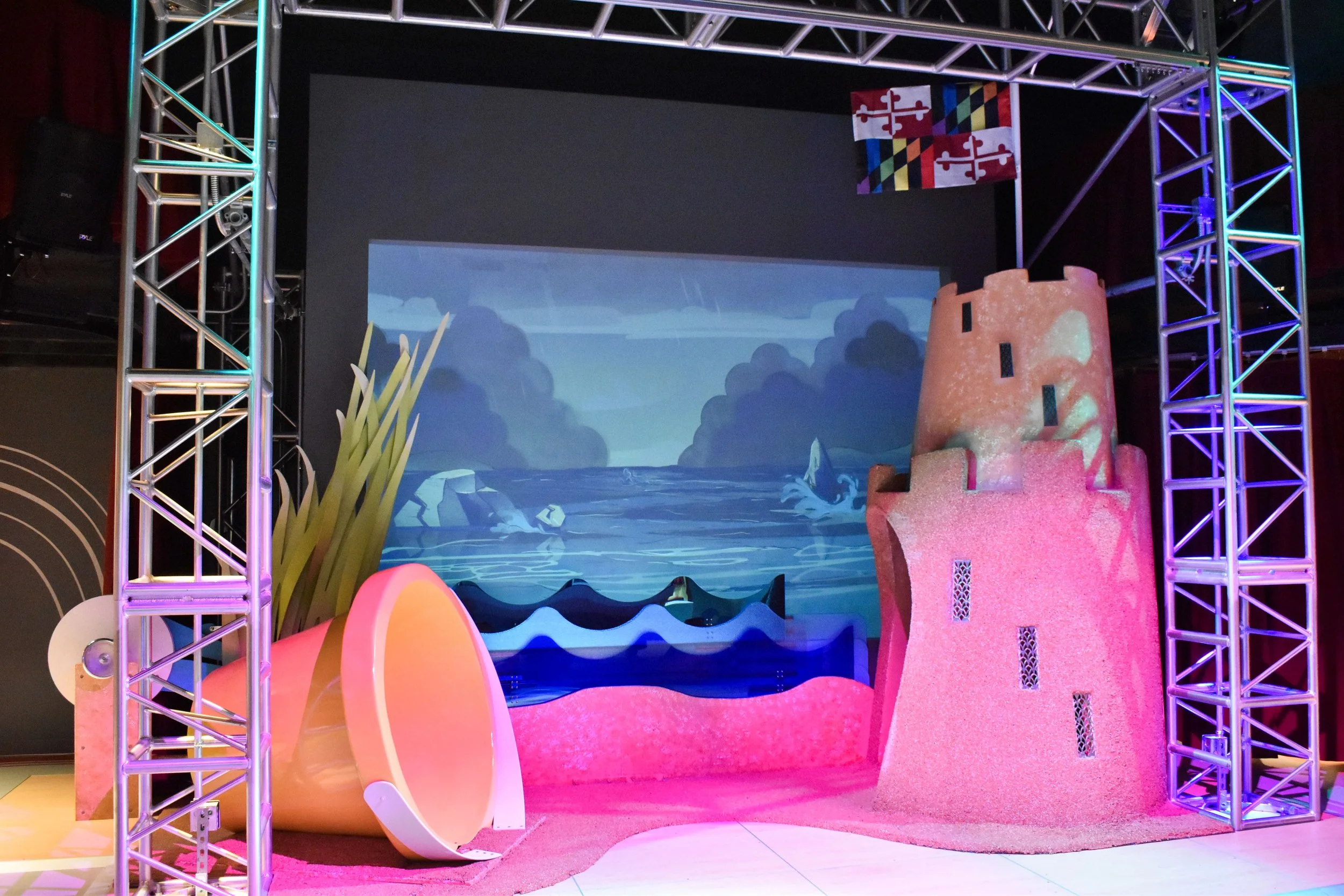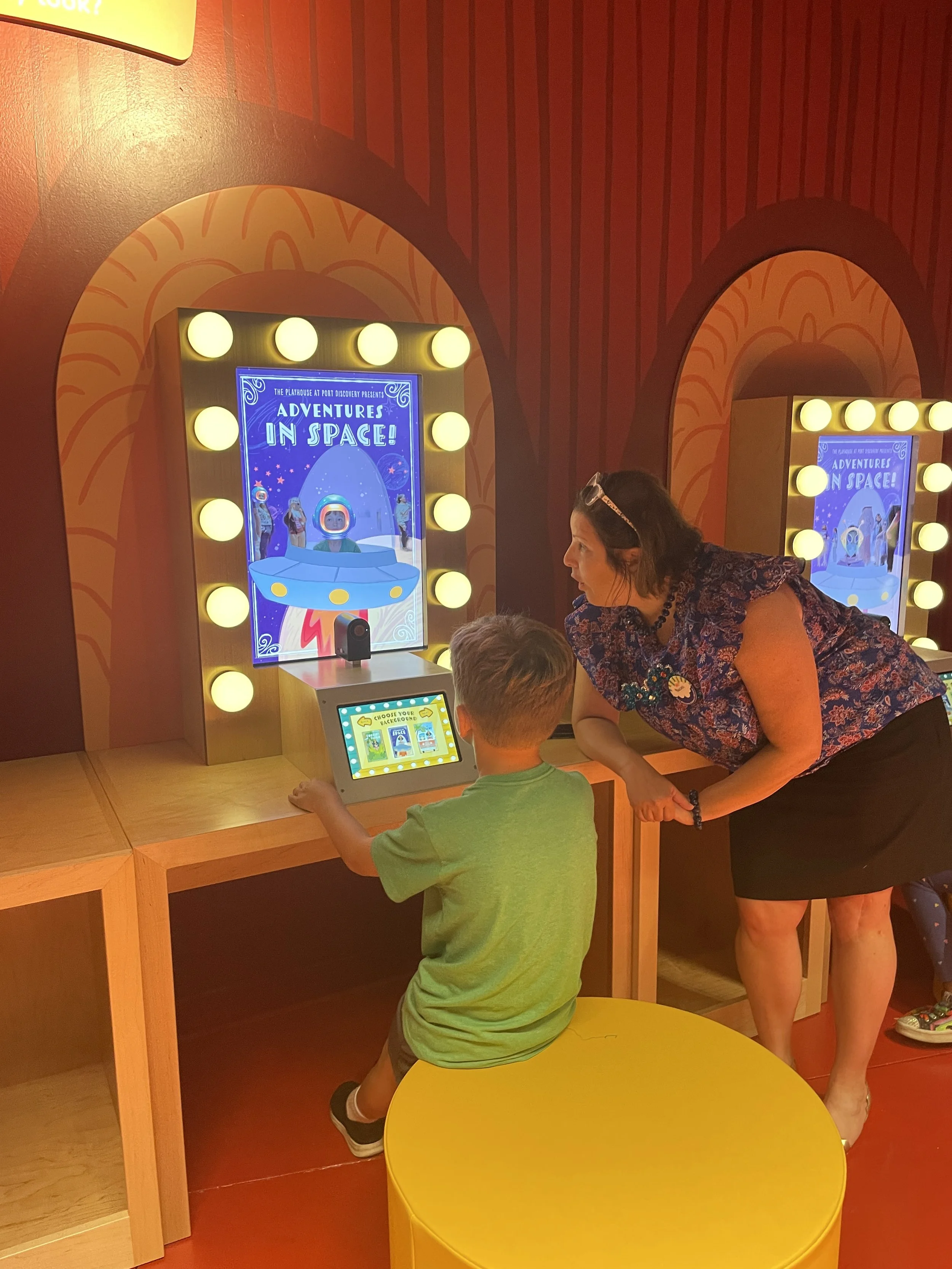 I collaborated with exhibit design firm Quatrefoil Associates to develop an interactive for their children’s theatre exhibit at Port Discover Museum in Baltimore. The interactive was called “Get into Character”, and functioned as a series of vanity style screens where children could try on Augmented Reality costumes and face filters.